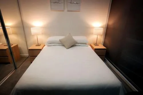 Situato al quarto piano di un edificio nel cuore di Braddon, l’appartamento Midnight Luxe offre due camere da letto e due bagni spaziosi, ideale sia per famiglie che per gruppi. Gli ospiti possono usufruire del parcheggio interno gratuito e sicuro, della piscina riscaldata coperta con vista sulla città, oltre alla possibilità di rilassarsi nella sauna privata.