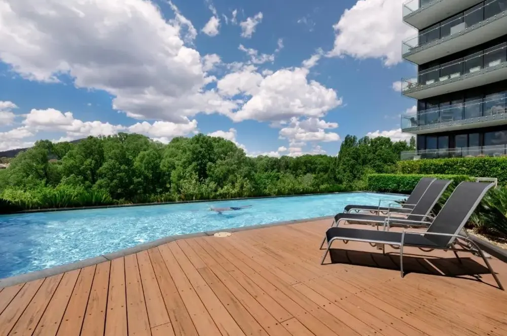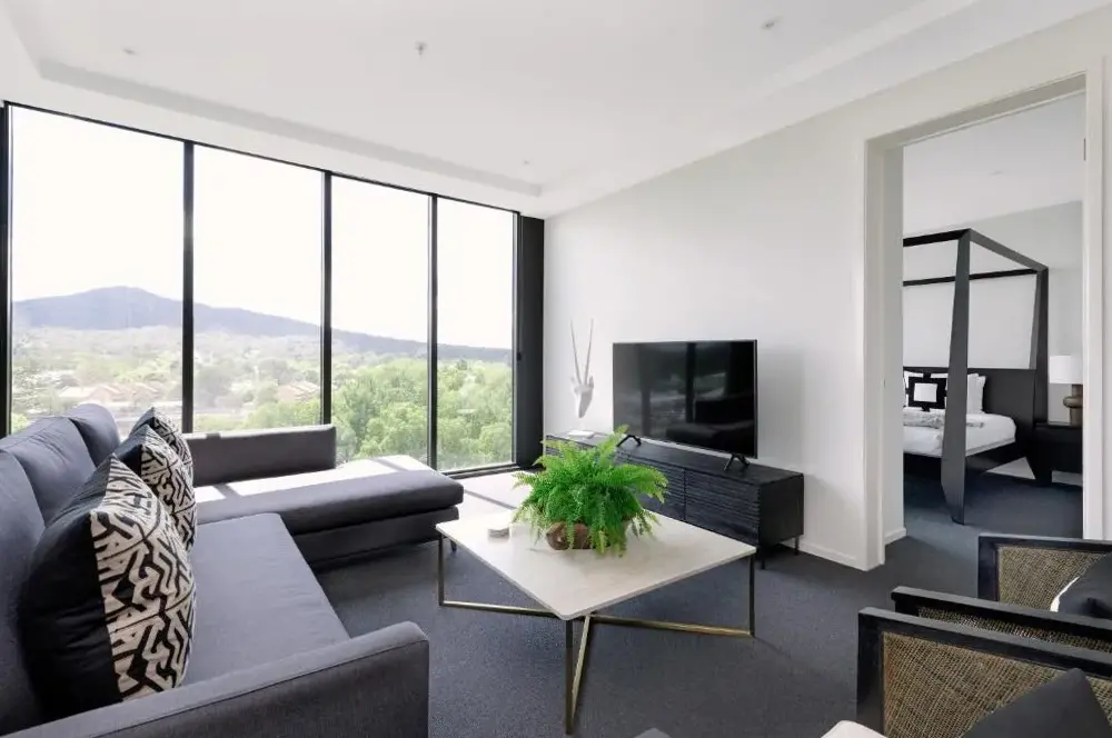 Ulteriori informazioni su Midnight Luxe 2BR 2Bath Apartment 408 in the heart of Braddon Pool Sauna L4 Views Secure Parking Wine WiFiSituato al 11 Kerridge Street nel quartiere residenziale di Kingston, questo elegante appartamento esecutivo offre due camere da letto adatte alle famiglie e una piscina interna riservata agli ospiti, ideale per rilassarsi dopo una giornata all’aria aperta.